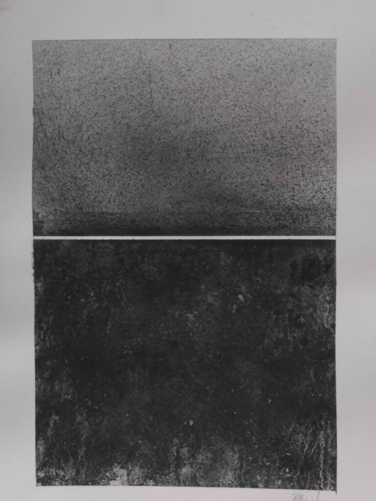 – contraste de tonalité, noir du charbon de bois et blanc des formes géométriques.